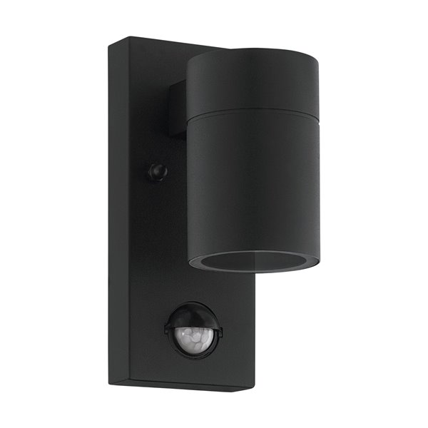 RIGA 5 - Applique - GU10-LED 1X2,8W inclusa - Struttura in acciaio zincato / finitura nero; Diffusore in vetro / finitura chiaro; Dotazione per installazione angolare ; IP44;