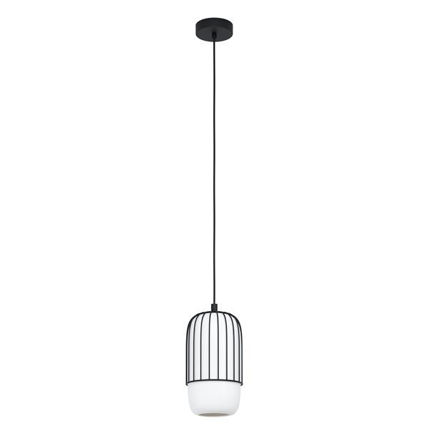MULEGES - Sospensione - E27 1X40W - Struttura in acciaio / finitura nero; Diffusore in vetro opalino opaco / finitura bianco;