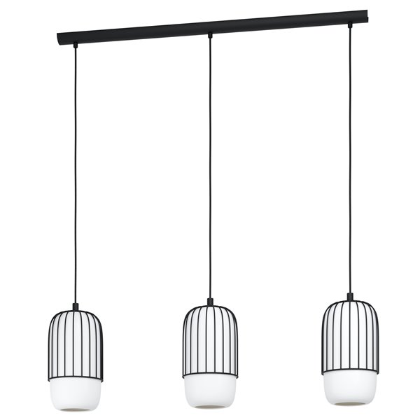 MULEGES - Sospensione - E27 3X40W - Struttura in acciaio / finitura nero; Diffusore in vetro opalino opaco / finitura bianco;