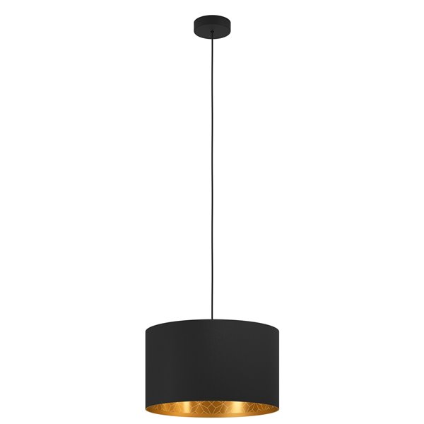 ZARAGOZA - Sospensione - E27 1X40W - Struttura in acciaio / finitura nero; Diffusore in tessuto con decori / finitura nero, oro;
