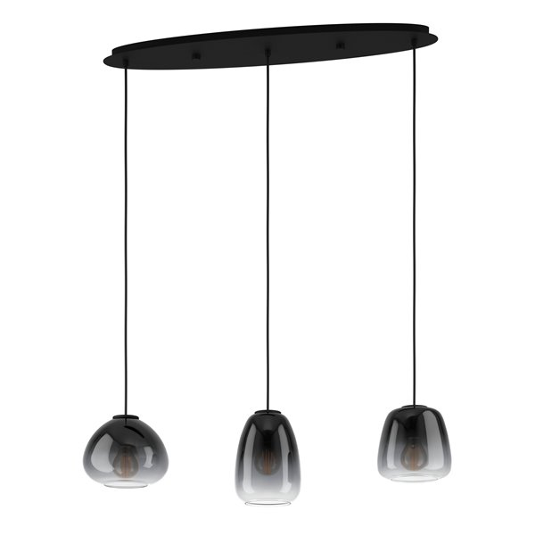 AGUILARES - Sospensione - E27 3X40W - Struttura in acciaio / finitura nero; Diffusore in vetro vaporizzato / finitura nero-grigio-trasparente;