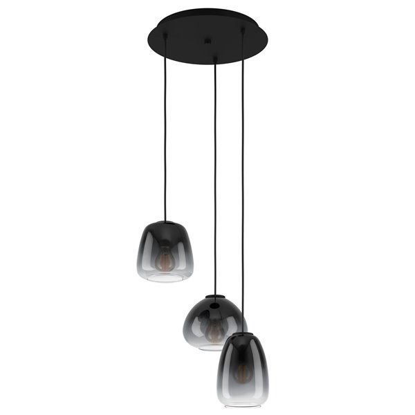 AGUILARES - Sospensione - E27 3X40W - Struttura in acciaio / finitura nero; Diffusore in vetro vaporizzato / finitura nero-grigio-trasparente;