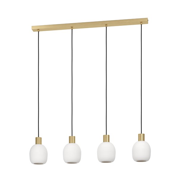 MANZANARES - Sospensione - E27 4X40W - Struttura in acciaio / finitura ottone spazzolato, oro; Diffusore in vetro opalino opaco / finitura bianco;
