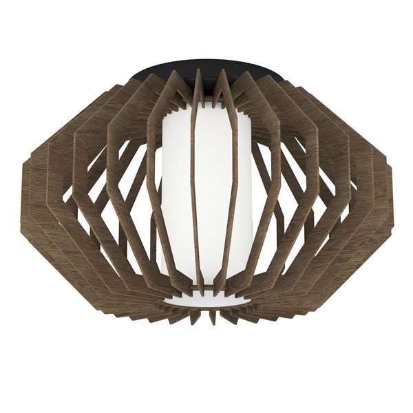 RUSTICARIA - Plafone - E27 1X40W - Struttura in acciaio / finitura nero; Diffusore in legno, vetro / finitura marrone, bianco;