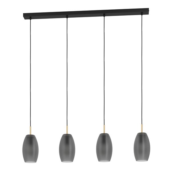 BATISTA - Sospensione - E27 4X40W - Struttura in acciaio / finitura nero, ottone spazzolato; Diffusore in vetro satinato / finitura grigio opaco;