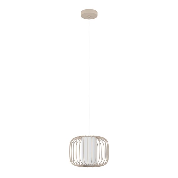 TERRAROSA - Sospensione - E27 1X40W - Struttura in acciaio / finitura color sabbia; Diffusore in tessuto / finitura bianco;
