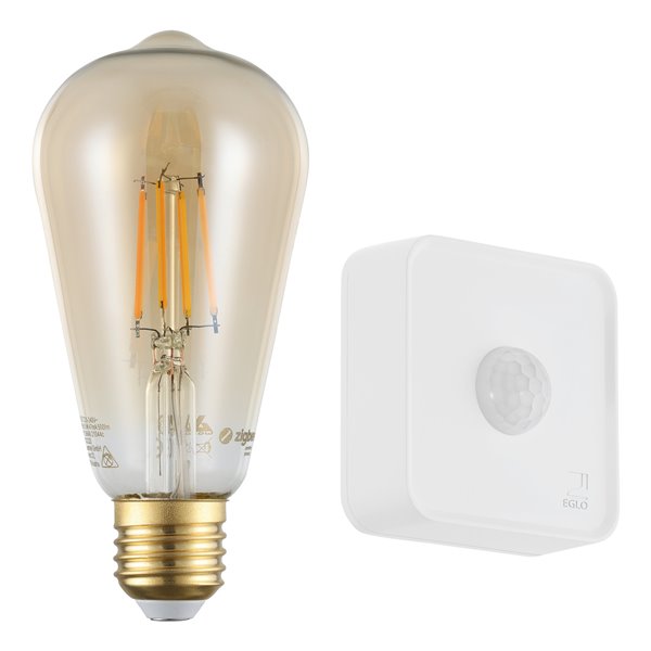 LM_LED_E27 - Lampadine - E27-LED-ST64 1X4,9W 2200K inclusa - Struttura in plastica / finitura bianco; Diffusore in vetro / finitura ambrata; controllo via App e Telecomando;