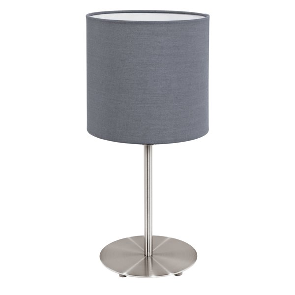 PASTERI - Lampada da tavolo - E27 1X60W - Struttura in acciaio / finitura nichel opaco; Diffusore in tessuto / finitura grigio;