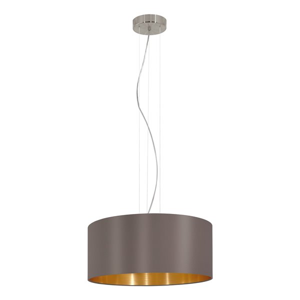MASERLO - Sospensione - E27 3X60W - Struttura in acciaio / finitura nichel opaco; Diffusore in tessuto / finitura cappuccino, oro;