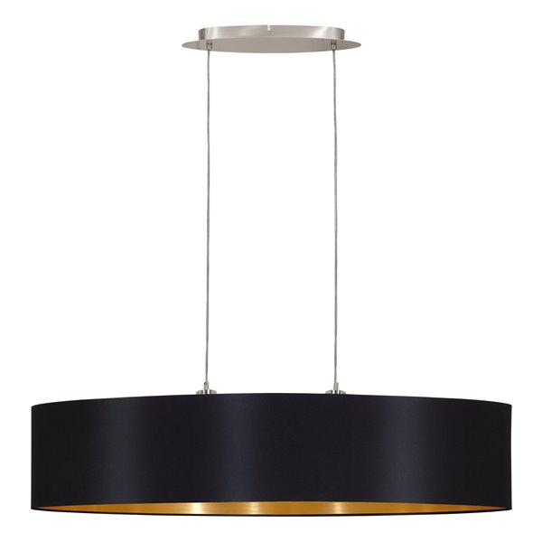 MASERLO - Sospensione - E27 2X60W - Struttura in acciaio / finitura nichel opaco; Diffusore in tessuto / finitura nero, oro;