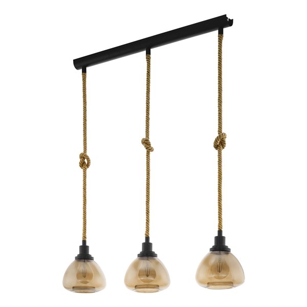 RAMPSIDE - Sospensione - E27 3X28W - Struttura in acciaio / finitura nero; Diffusore in vetro vaporizzato / finitura ambrata;