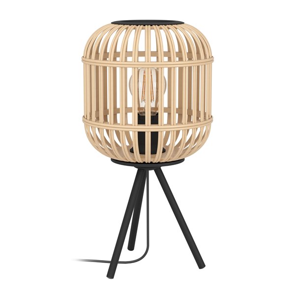 BORDESLEY - Lampada da tavolo - E27 1X28W - Struttura in acciaio / finitura nero; Diffusore in legno / finitura colore naturale;