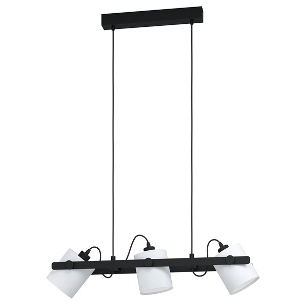 HORNWOOD 1 - Sospensione - E27 3X28W - Struttura in metallo e legno / finitura nero; Diffusore in tessuto / finitura bianco;