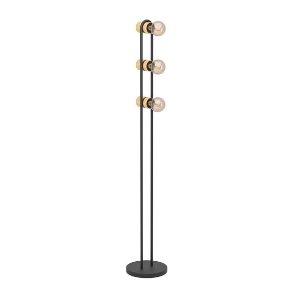 CHIEVELEY - Piantana - E27 3X28W - Struttura in acciaio / finitura nero; Diffusore in legno / finitura marrone;
