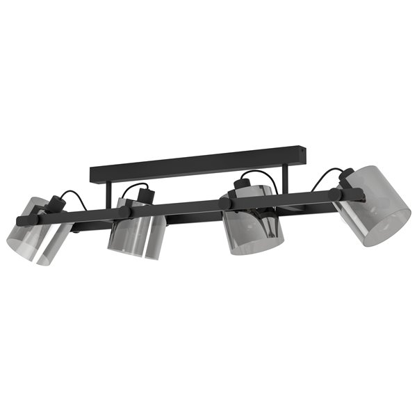 HORNWOOD 2 - Plafone - E27 4X40W - Struttura in metallo e legno / finitura nero; Diffusore in vetro vaporizzato / finitura nero trasparente;