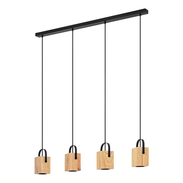 AYLES - Sospensione - GU10-LED 4X3W inclusa - Struttura in acciaio / finitura nero; Diffusore in legno / finitura marrone;