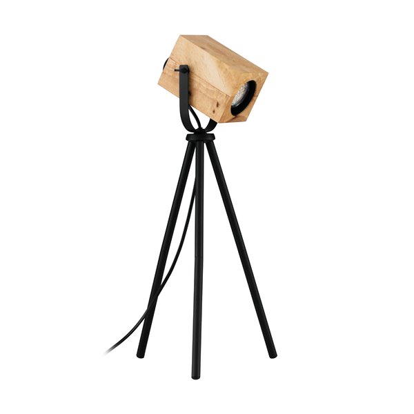 AYLES - Lampada da tavolo - GU10-LED 1X3W inclusa - Struttura in acciaio / finitura nero; Diffusore in legno / finitura marrone;
