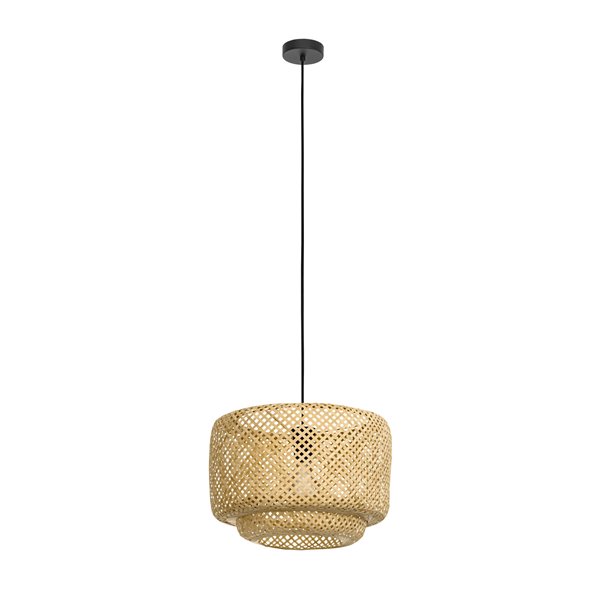 HETTONLE - Sospensione - E27 1X40W - Struttura in acciaio / finitura nero; Diffusore in legno / finitura colore naturale;