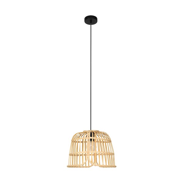 GLYNEATH - Sospensione - E27 1X40W - Struttura in acciaio / finitura nero; Diffusore in legno / finitura colore naturale;