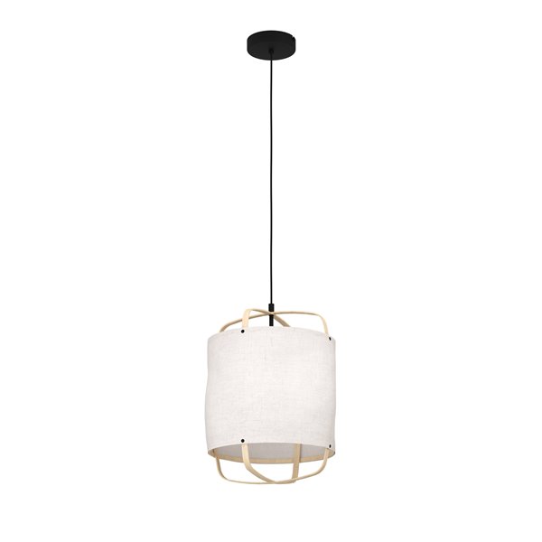 SURFLEET - Sospensione - E27 1X40W - Struttura in acciaio / finitura nero; Diffusore in legno e tessuto / finitura colore naturale;