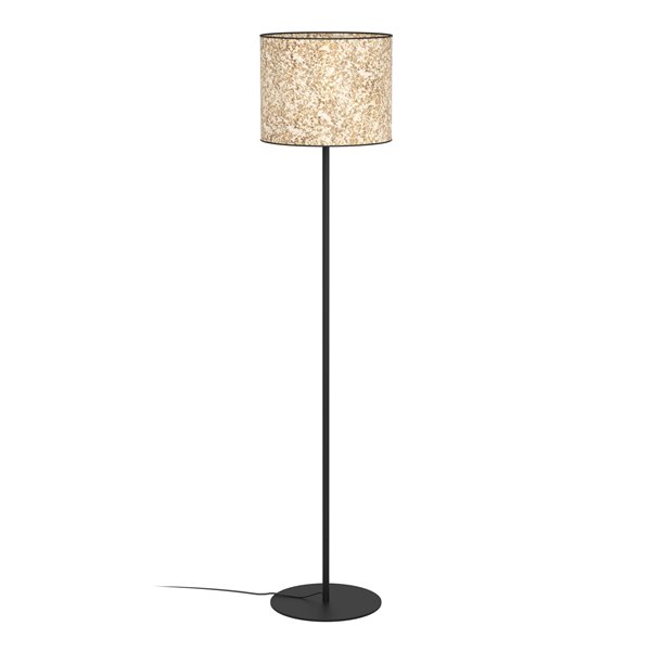 BUTTERBURN - Piantana - E27 1X25W - Struttura in acciaio / finitura nero; Diffusore in tessuto con foglie di betulla / finitura beige, verde;