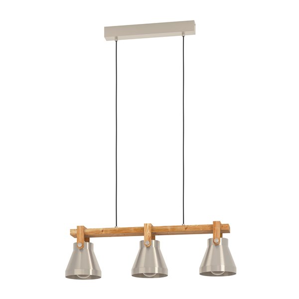 CAWTON - Sospensione - E27 3X40W - Struttura in metallo e legno / finitura color acciaio, marrone rustico;