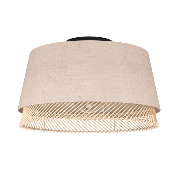 TABLEY - Plafone - E27 1X40W - Struttura in acciaio / finitura nero; Diffusore in tessuto, legno / finitura naturale, marrone;