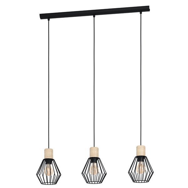 PALMORLA - Sospensione - E27 3X60W - Struttura in metallo e legno / finitura nero, marrone;