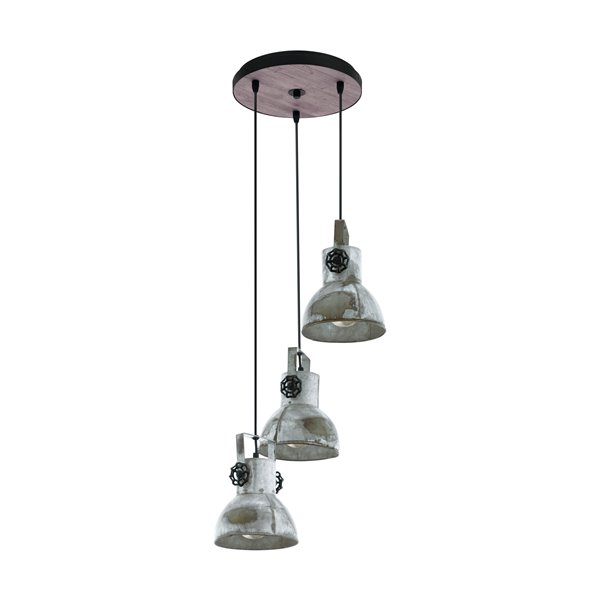 BARNSTAPLE - Sospensione - E27 3X40W - Struttura in legno, acciaio / finitura marrone patinato, nero; Diffusore in acciaio / finitura aspetto zinco usato;