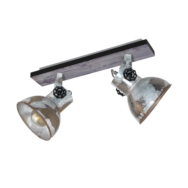 BARNSTAPLE - Faretti - E27 2X40W - Struttura in legno, acciaio / finitura marrone patinato, nero; Diffusore in acciaio / finitura aspetto zinco usato;