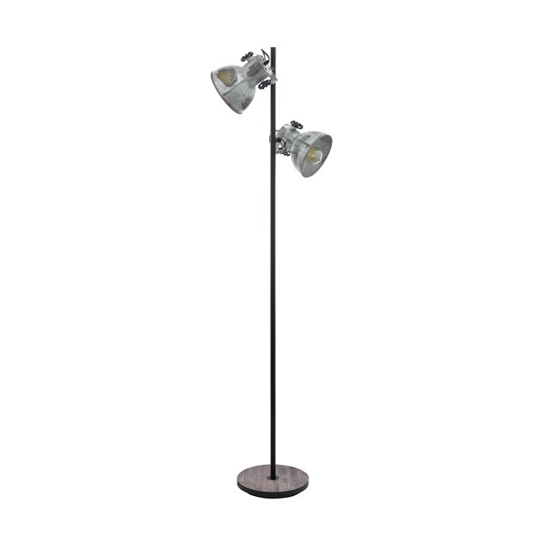 BARNSTAPLE - Piantana - E27 2X40W - Struttura in legno, acciaio / finitura marrone patinato, nero; Diffusore in acciaio / finitura aspetto zinco usato;