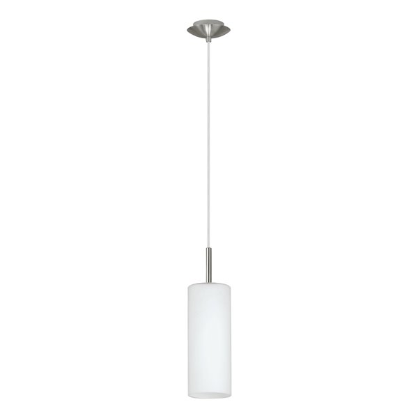 TROY 3 - Sospensione - E27 1X40W - Struttura in acciaio / finitura nichel opaco; Diffusore in vetro satinato / finitura laccato bianco;