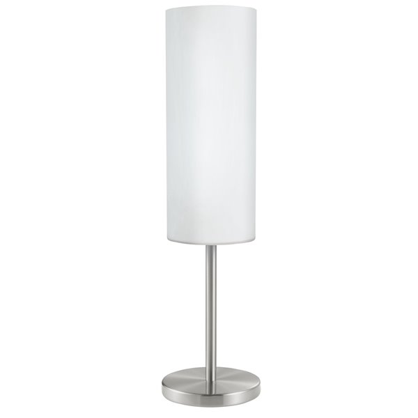 TROY 3 - Lampada da tavolo - E27 1X40W - Struttura in acciaio / finitura nichel opaco; Diffusore in vetro satinato / finitura laccato bianco;