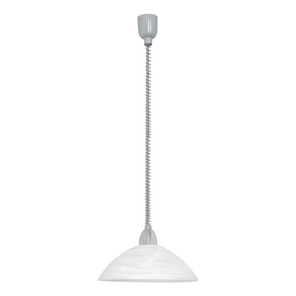 LORD 2 - Sospensione - E27 1X60W - Struttura in plastica, acciaio / finitura grigio, nickel opaco; Diffusore in vetro alabastro / finitura bianco; Altezza regolabile;