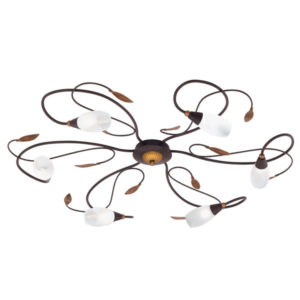 GERBERA 1 - Plafone - G9-ECO 6X33W inclusa - Struttura in acciaio / finitura marrone invecchiato, oro; Diffusore in vetro satinato / finitura bianco;