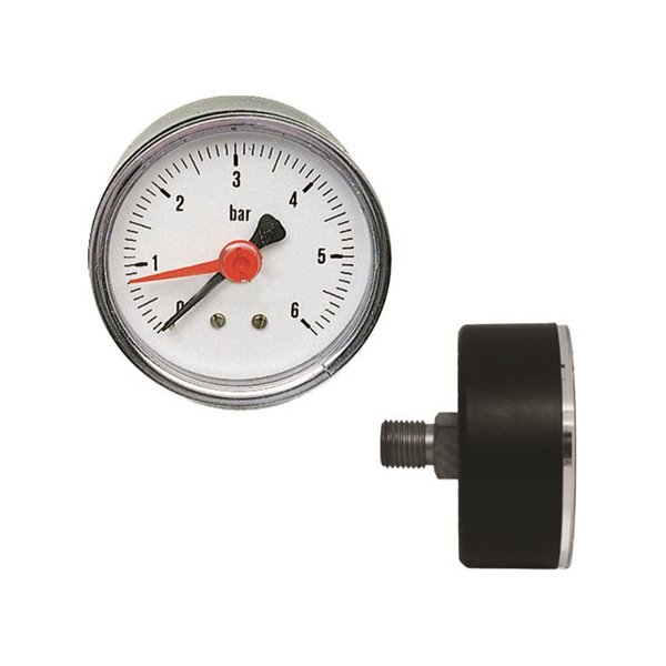 Il manometro posteriore con diametro di 63 mm e una portata massima di 6 bar, dotato di attacco 1/4", rappresenta un accessorio affidabile e robusto per il monitoraggio della pressione.