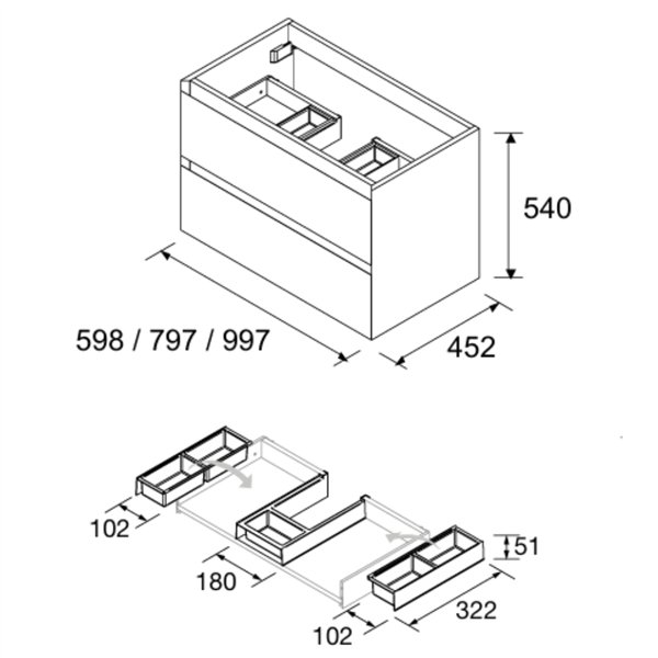 Mobile bagno sospeso Tania da 80 cm in finitura eucalipto, con 2 cassetti soft-close e lavabo incluso. Struttura in compensato di betulla impiallacciato, interni finitura Onix, guide Grass V8 e ganci ad alta resistenza. Design moderno con maniglia a gola e lavorazioni a 45°.