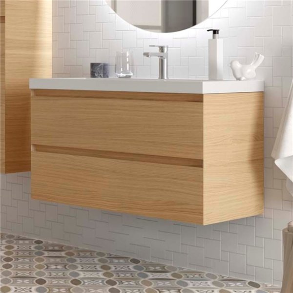 Mobile bagno sospeso 80 cm eucalipto con 2...