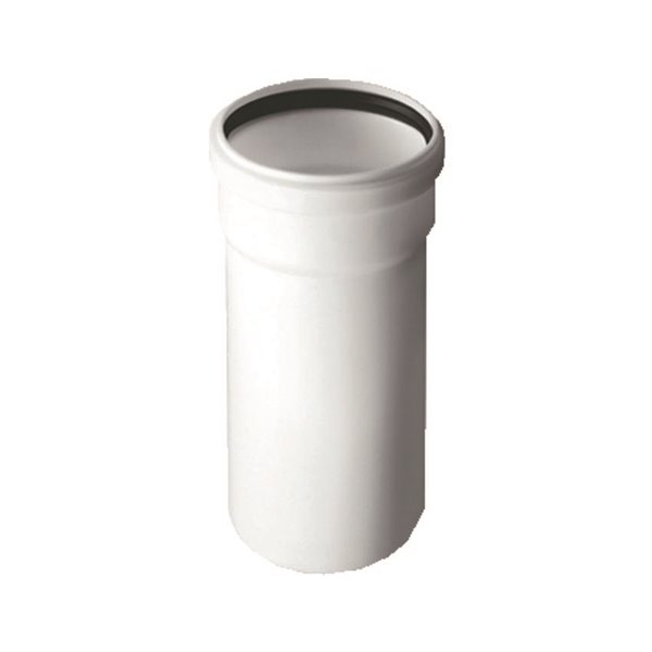 Elemento lineare maschio-femmina Ø125mm lunghezza 500mm in polipropilene PPS bianco. Completo di guarnizione. Per canne fumarie caldaie a condensazione e sistemi evacuazione fumi.