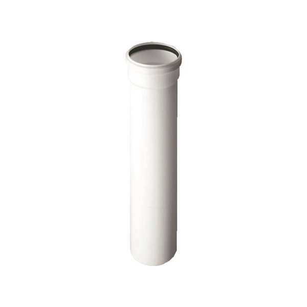 Elemento lineare maschio-femmina Ø125mm lunghezza 500mm in polipropilene PPS bianco. Completo di guarnizione. Per canne fumarie caldaie a condensazione e sistemi evacuazione fumi.
