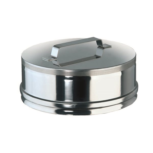 Tappo ispezione per fumi in acciaio inox AISI 316L diametro 180mm, lunghezza 80mm. Per trasformazione raccordi a T in elementi ispezionabili. Resistente alla corrosione, ideale per canne fumarie.
