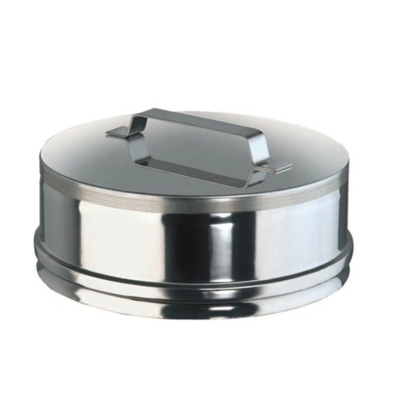 Il Tappo Ispezione Fumi Ø180mm in acciaio inox AISI 316L è un elemento per la chiusura e ispezione di raccordi a T in sistemi di evacuazione fumi.