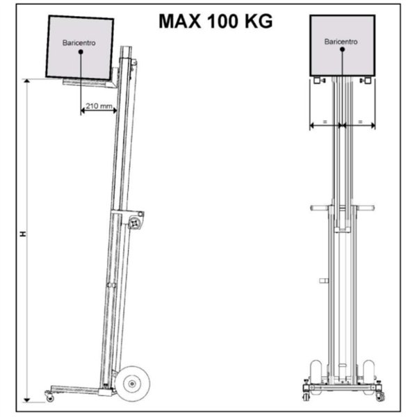 Carrello sollevatore con portata 100 kg altezza max 230 cm – Golia 2300