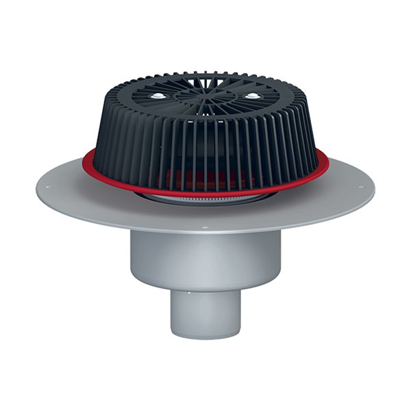Sicurezza scarico tetti DN110, verticale con collare in PVC, regolabile in altezza 28-68mm.