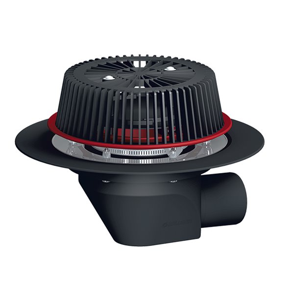 Sicurezza scarico tetti DN75/110, orizzontale con collare in PP, regolabile in altezza 28-68mm.