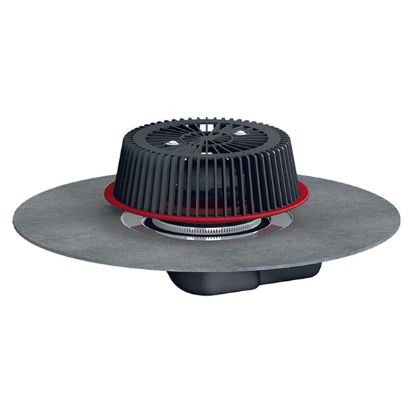 Sicurezza scarico tetti “PowerSafe" DN75 orizzontale, con membrana bituminosa, regolabile in altezza.