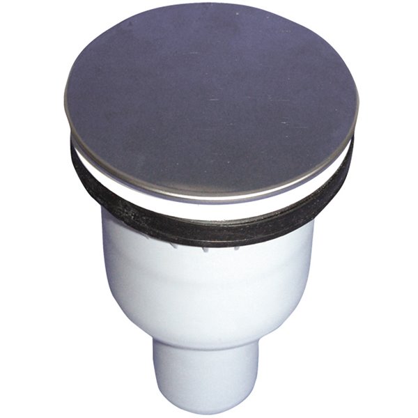 Sifone per piatti doccia DN50 verticale per aperture di scarico Ø 90mm con calotta in acciaio inox Ø 114mm