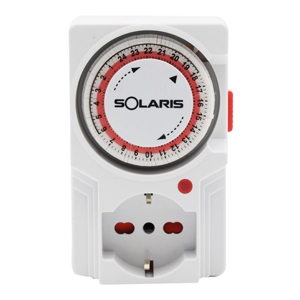 L'interruttore a spina universale Unistar 24h 3500W è un programmatore meccanico semplice e funzionale progettato per gestire l'alimentazione e lo spegnimento di dispositivi elettrici con una potenza massima di 3500W. Dotato di una spina da 16A e una presa polivalente universale, questo interruttore è versatile e adatto per una varietà di dispositivi elettrici domestici e industriali. Le sue caratteristiche tecniche includono un'alimentazione di 230V AC a 50/60Hz, un programmatore giornaliero con un intervallo minimo di programmazione di 15 minuti e un interruttore manuale per la modalità di funzionamento automatico o manuale. Senza riserva di carica, questo interruttore offre un'efficace gestione dell'alimentazione per ottimizzare l'efficienza energetica e la sicurezza.