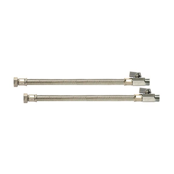 Composto da due flessibili dotati di treccia in acciaio inox AISI 304 MF da 1/2", questo kit assicura una connessione resistente e affidabile del boiler. I flessibili sono accompagnati da due rubinetti di intercettazione a sfera cromati, dotati di leve in metallo per un controllo preciso e intuitivo del flusso d'acqua.