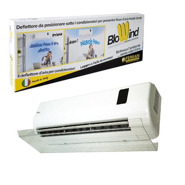 Il deflettore per condizionatori Blowind, con dimensioni di L690xH50xP250mm, è realizzato in plexiglas leggero, garantendo facilità di montaggio sullo split. Progettato per deviare il flusso dell'aria fredda diretta proveniente dallo split, assicura un controllo ottimale sulla direzione dell'aria per un comfort climatico migliorato. Completo di viti, tasselli ad espansione e rondelle in gomma in dotazione, offre una installazione stabile e sicura. Un accessorio essenziale per ottimizzare l'efficienza e il comfort del sistema di condizionamento.